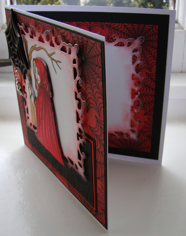 Red, white, and black are always show stoppers. Great composition and awesome embellishments, especially the spiderweb and spider. ;-) Thanks so much for joining us this week at Papercraft Star!