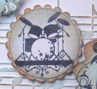 I have used Tando creative scalloped nested circles and inks to colour them. The stamps used to decoratethe nesties are inkadinkadoo stamps from assorted musical sets. the embossed section has used a music style embossing folder