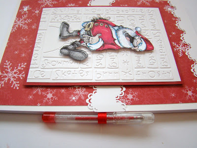 Unknown B&W holly card for backing, snowflake embossing folder and santa digi image from make it crafty!