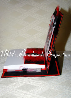 I have made an easel card notepad and pen holder and used papers and Embellies from my stash