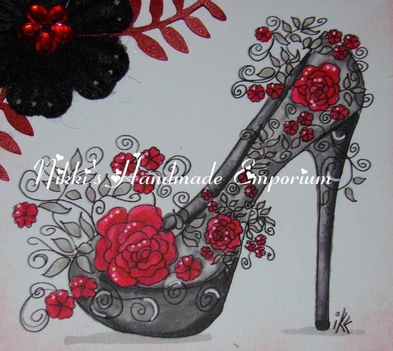 I have used this gorgeous image by Karleigh Sue digi stamps called Biker Bomb, she has been coloured in pro markers.  I have also used flowers and feathers to embellish